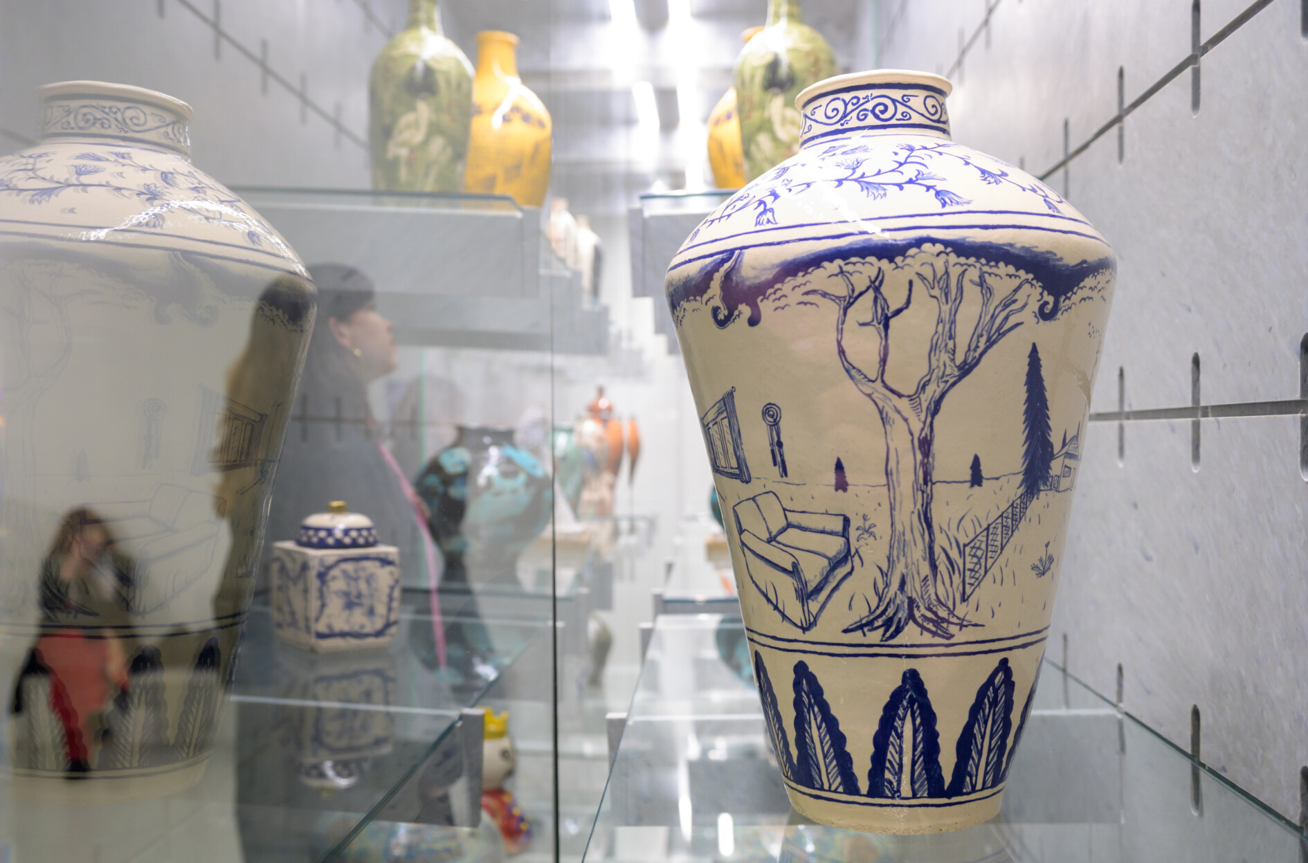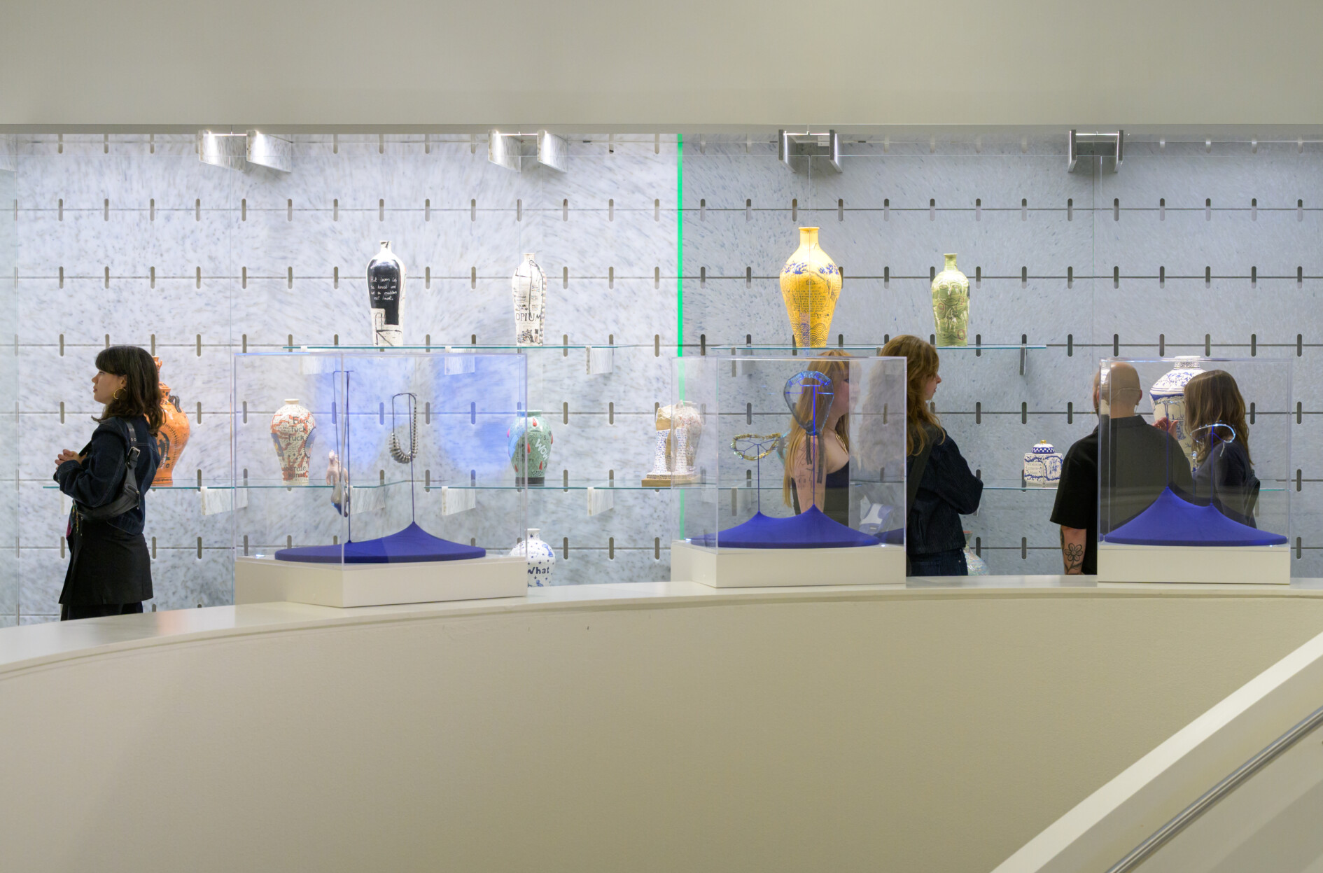 Bovenaan de monumentale, gedraaide trap van het museum is in 2022 een nieuwe vaste plek gecreëerd waar altijd keramisch werk te zien is. In de afgelopen jaren presenteerde het museum op deze plek in wisselende samenstelling telkens een aantal belangrijke werken uit de eigen keramiekcollectie. Nu laten we werk van een jonge Bossche keramist zien. De kast is ontworpen door Peter Hopman van Bureau Lakenvelder in samenwerking met GoGo Plastics. Hij is gemaakt van 100% gerecycled plastic in combinatie met glazen platen. Het is een flexibel ontwerp, geïnspireerd op de geperforeerde stalen gereedschapswand, waarmee keramisch werk steeds in verschillende configuraties getoond kan worden.
