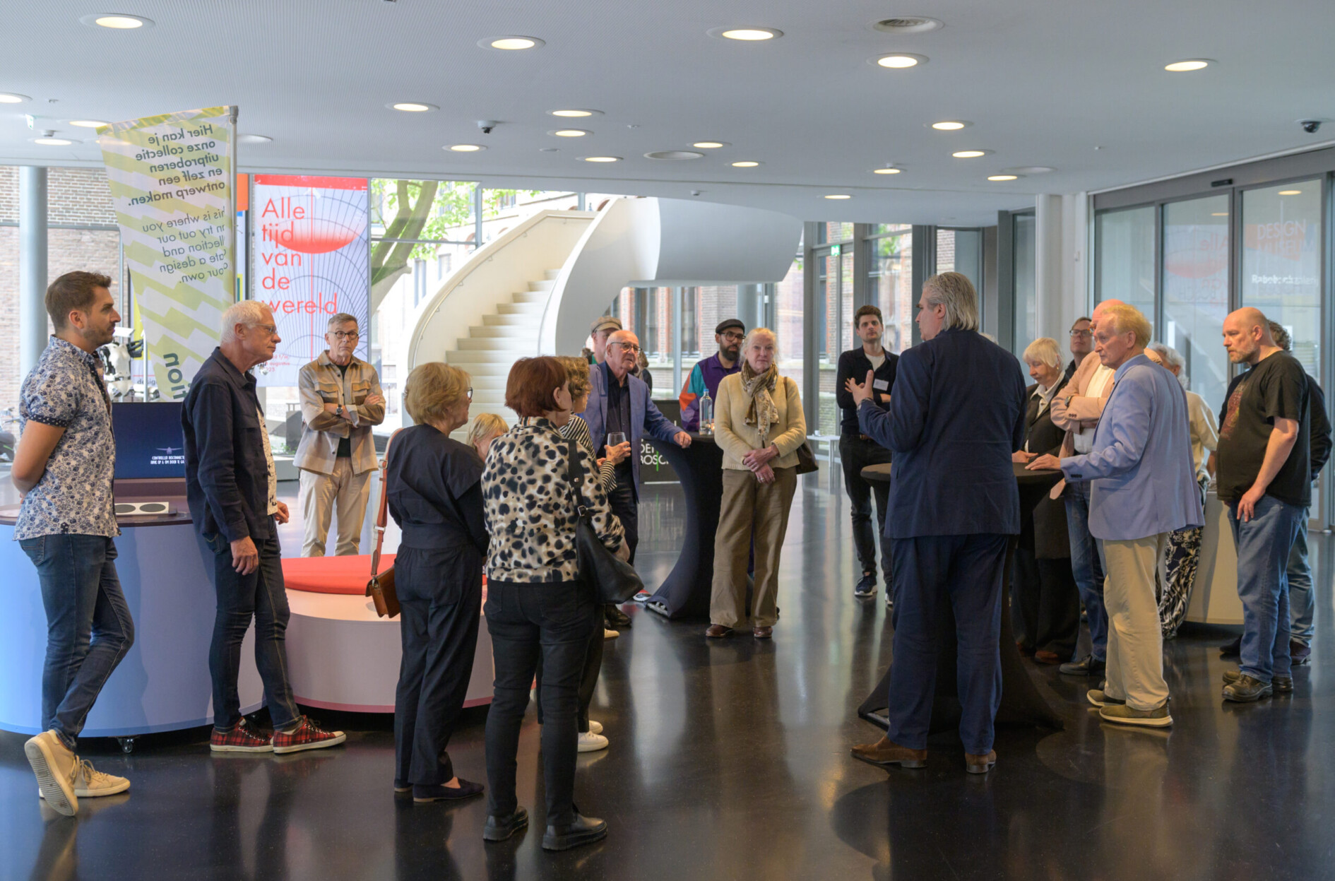 Donderdag 5 juni 2025 vond het jaarlijkse zomerse vriendenevent van Design Museum Den Bosch plaats. Een groep van 30 donateurs kreeg een exclusief kijkje achter de schermen van het museum. Tijdens een backstage-rondleiding nam curator Anne-Karlijn van Kesteren de gasten als eersten mee door de tentoonstelling Vrouwen als technologie, die op dat moment nog niet toegankelijk was voor het publiek. Aansluitend genoten de aanwezigen van een lezing door senior curator Yassine Salihine, gevolgd door een gezellige borrel ter afsluiting van de middag. Wil je dit soort evenementen bezoeken en vriend worden van het museum? Neem hier een kijkje.